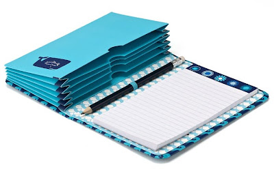 . This accordion style organizer features an aqua and navy pattern and a delightful whale graphic. Measures 6.5″ x 4.25″ x 0.875â€. Accordion style organizer. Elastic closure. Includes a pencil and a 6″ x 3.5″ lined memo pad. $12.95. Buy here