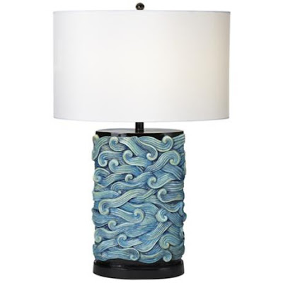 Add a dash of cool color to your room decor with the Prince of Tides Turquoise Table Lamp. A clean, white drum shade is hoisted above a wide sculpted body featuring a wonderful pattern of light blue squiggles, emulating the waves in a clear, choppy sea. Drift away in style with this fabulous modern table lamp. $199.91. Free shipping. Buy here
