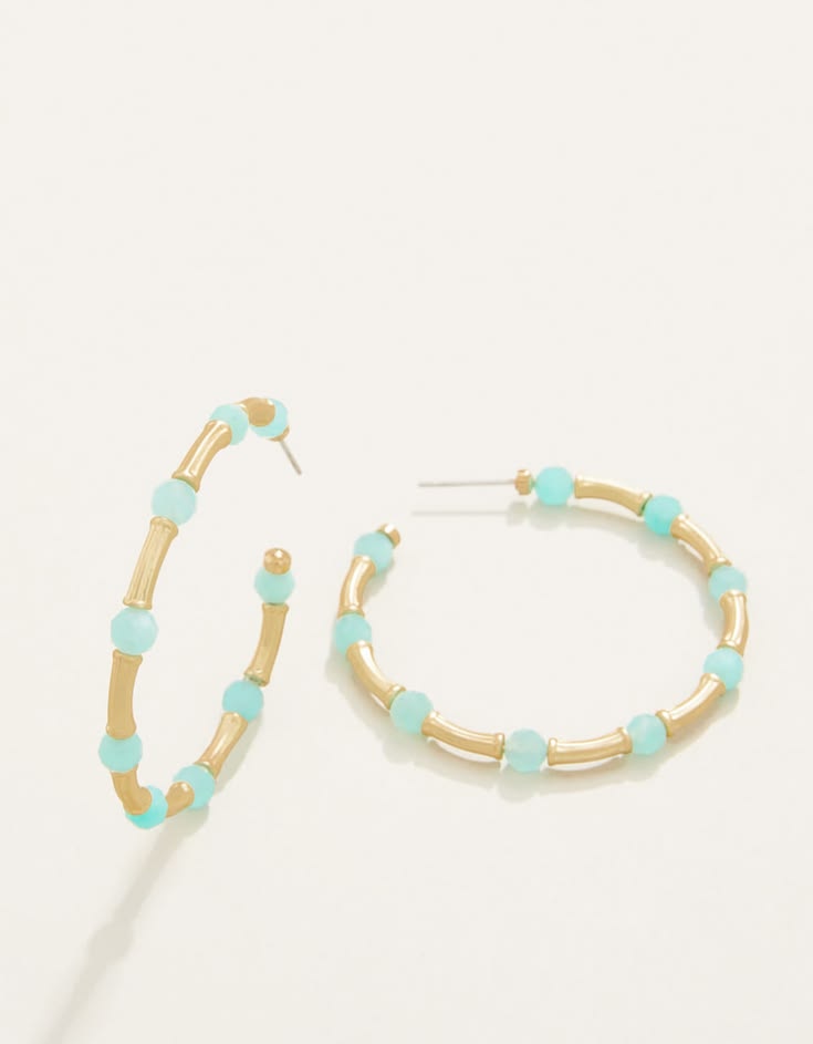 The fun sea foam hues of these amazonite Calm Waters Hoop Earrings bring a touch of the Lowcountry to every outfit. Featuring semi-precious beads and 18kt matte gold plated bars. $48. Buy here.