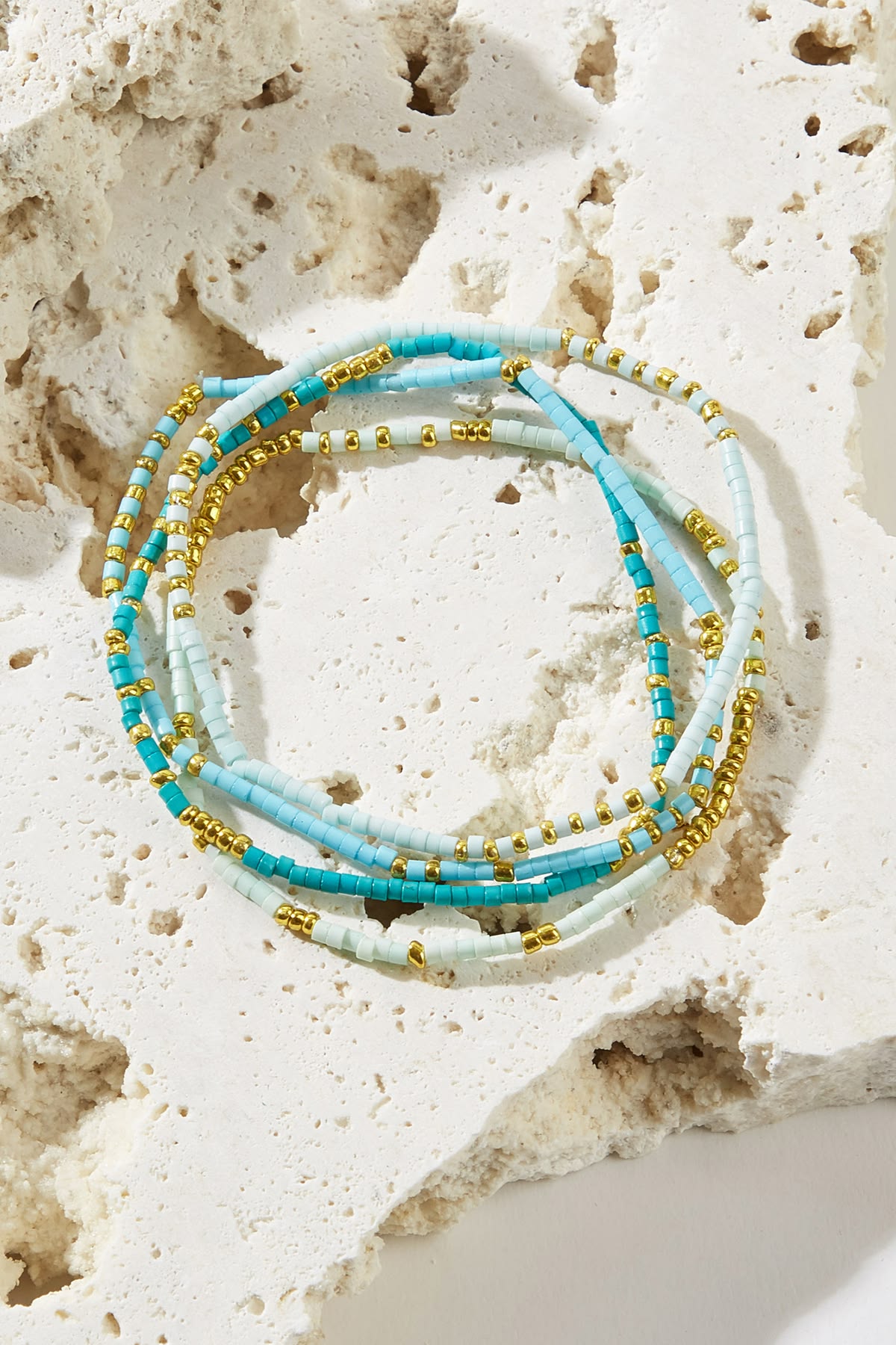 The Blue Calm Beaded Bracelet Set brings an easy pop of color to your everyday look. This set of four features blue and gold-tone beads for a layered feel, with a versatile design that styles seamlessly together or worn solo. $7. Buy here.