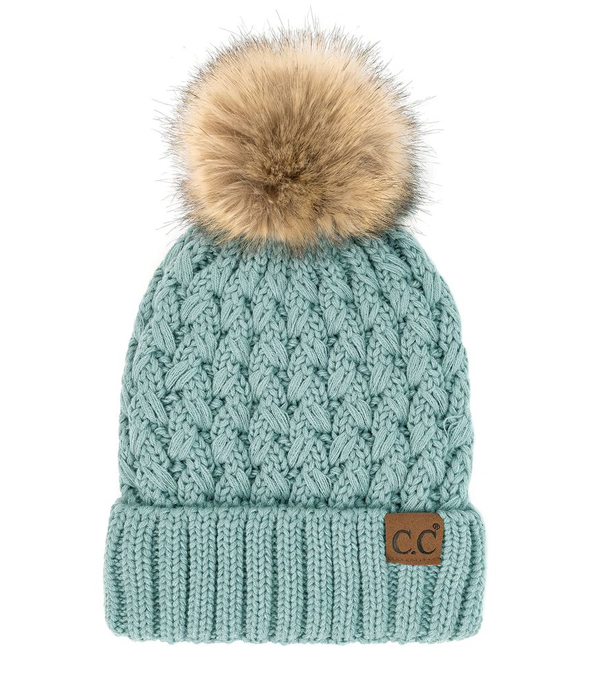 Stay stylish and cozy with this soft C.C Exclusives Fuzzy Lined Knit Fur Pom Beanie Hat in Winter Mint. Perfect for those chilly days where you still want to look fashionable. $27.99. Buy here.