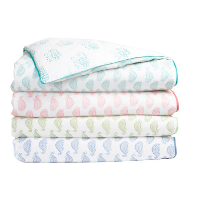 The Neelam Teal Quilt is lightweight and made of fine quality cotton voile that is screen-printed by hand and quilted in Jaipur, India. Inspired by the tradition of block printing, this type of handcrafted design dates back to Moghul times, and is an art form that continues to flourish in family-run workshops today. You’ll love the way our easy-care Neelam Teal Quilt brings a gorgeous new look to your bedroom. Neelam Teal Quilt with 2 Shams is 100% cotton voile, polyester fill. $79.99. Buy here.