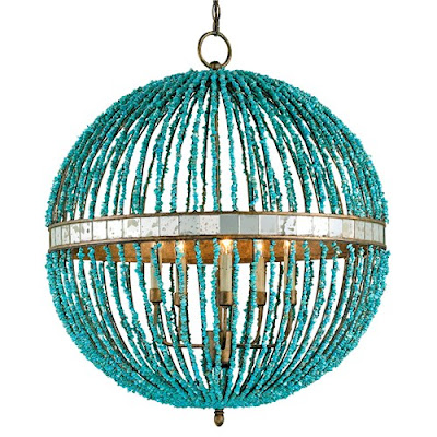 This Turquoise Rivulets Chandelier features a hand-forged iron halo that gives way to a diaphanous curtain of turquoise beads, making a stylish addition to any living space. $1498. Buy here.