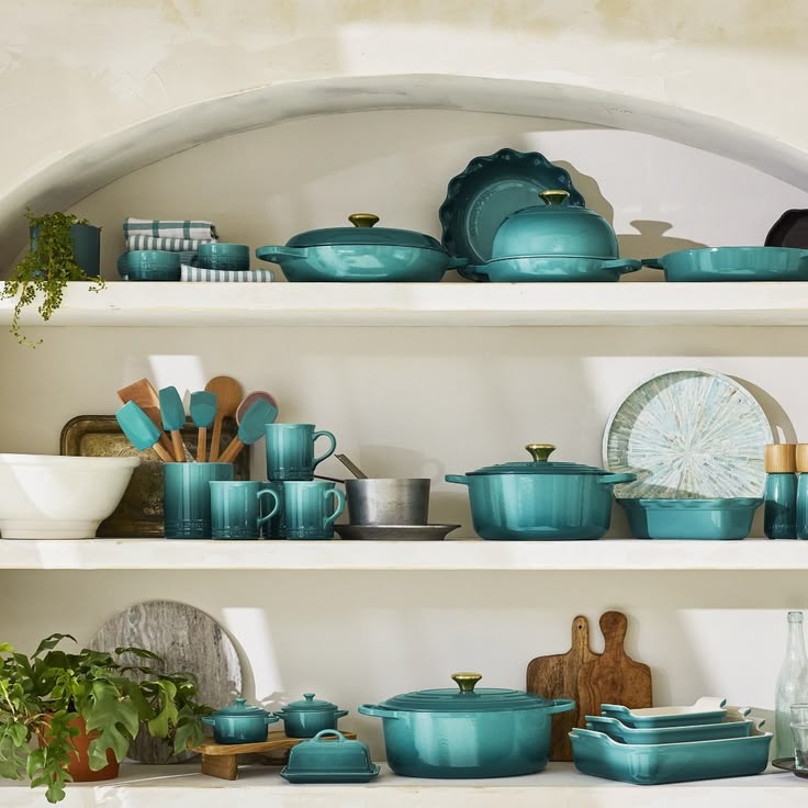 This turquoise Cuisinart Culinary PurelyCeramic Nonstick 12-Piece Cookware Set brings design and function to your kitchen. Each piece is contoured for style and the ergonomic handles are equipped with finger grips that make it easy when moving pieces from kitchen to table. Includes bamboo utensils. $435 Sale $299.95. Free Shipping. Buy here.