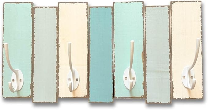 The light palette of pale blues, cream and misty sage green on this solid wood Coastal 4 Hook Wall Rack give a relaxed seaside air to your beach or shabby chic décor. $32.99. Buy here.