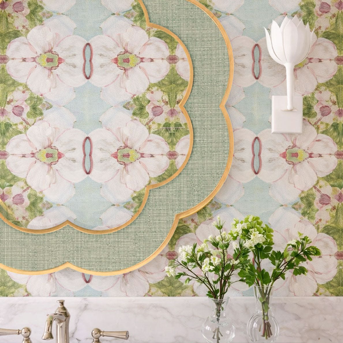 This Leigh Mirror features a fabulous floral frame finished in Louis Raffia for natural texture and intrigue. Gentle curves are complemented by antiqued brass edging that gives a radiant and refined look. $750. Buy here.