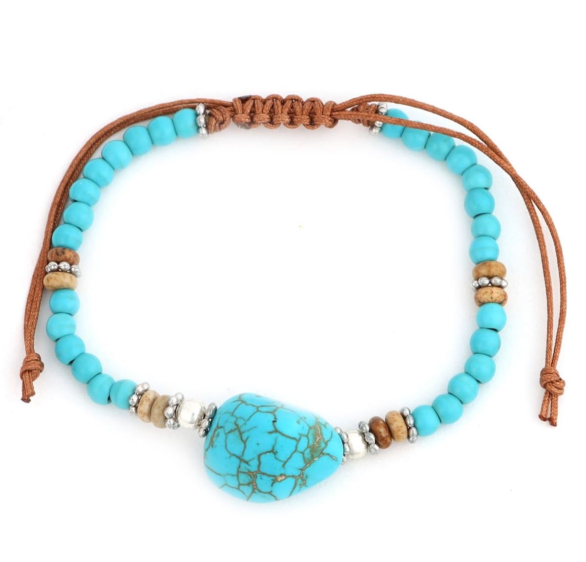 This Turquoise Bead Bracelet features polished beads and semiprecious stones that amplify the vintage-chic style of the adjustable cord bracelet. $15. Free Shipping. Buy here.