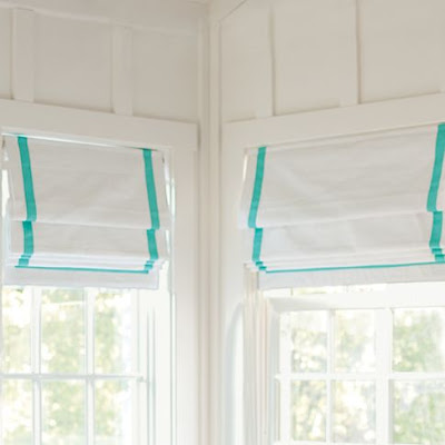 A simple double-stripe aqua border gives the Harper Roman Shade a classic, tailored look. A great choice for nurseries and bedrooms, the polyester blackout lining darkens rooms for peaceful naps. $149-$229. Buy here.