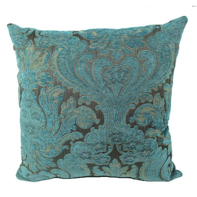 This luxurious Cut Chenillie Mocha Decorative Pillow features a raised chenille woven damask pattern in a deep turquoise blue, set on a burnished green background. The pillow is made with a coordinated green backing and filled with hollofil for down-like softness. $36.99. Buy here
