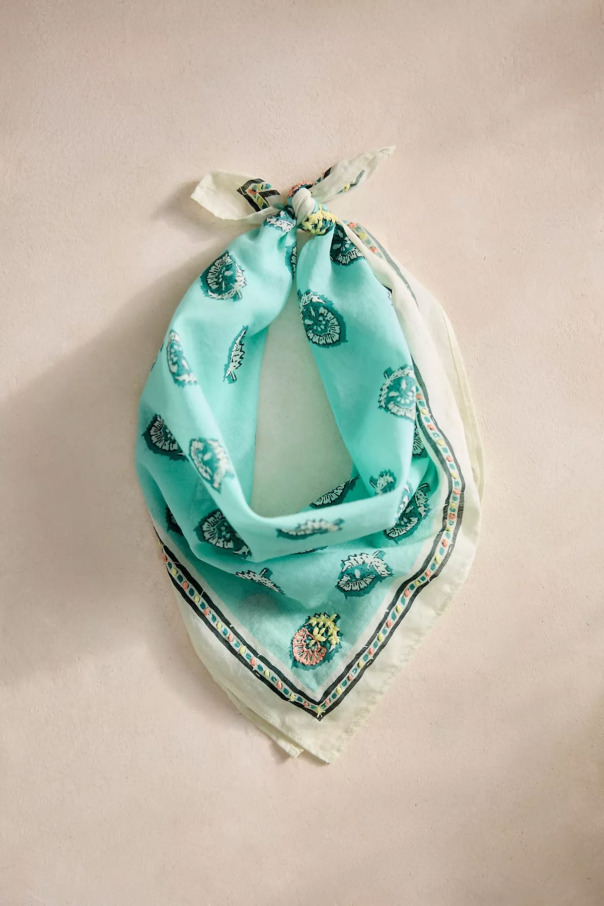 Embroidered touches accent this 100% cotton Embroidered Block Print Cotton Bandana, perfect to wear around your neck, tie in your hair, or knot on the handle of your favorite tote. $22. Buy here.