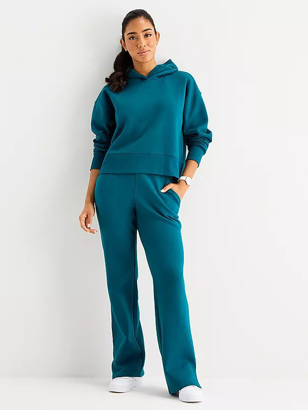 This teal Super Soft Fleece Pullover Hoodie delivers the ultimate comfort as a layer for workouts or chilling. Made from super-soft fleece, it features a drawstring hood and a front kangaroo pocket. $38 Sale $14.99. Buy here.