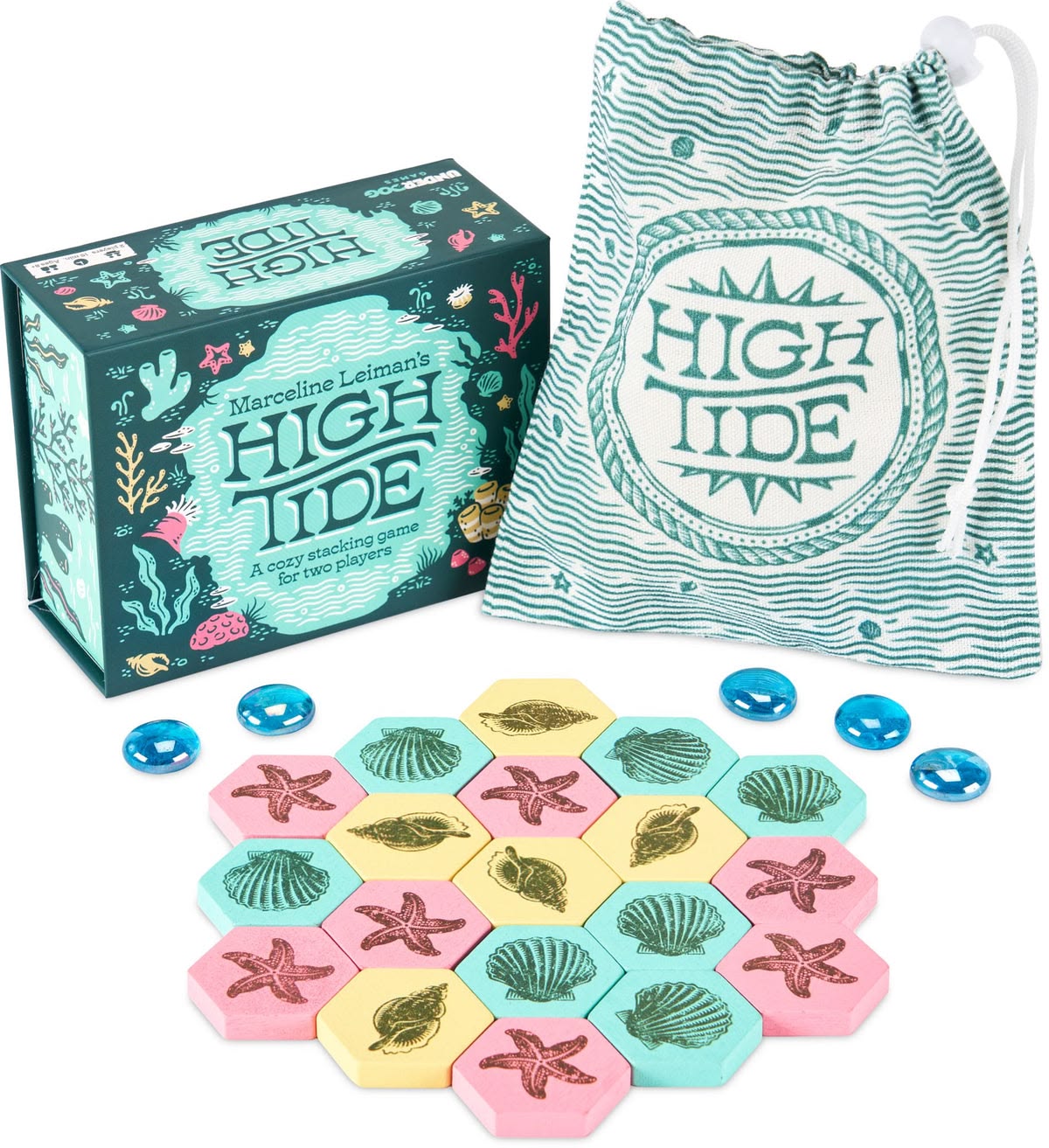 High Tide is a cozy 2-player stacking game inspired by the shifting tides. Outmaneuver your opponent by covering their tiles and keeping yours visible. Easy to learn yet full of depth, it’s beautifully made with natural wood tiles and colorful glass stones. $19.99. Buy here.