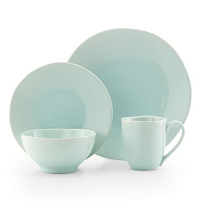 Set a cool, contemporary table with this Lenox Origins Blue Ice 4-pc. Place Setting. Its eye-catching aqua hue is just what you need to energize your dining room decor. For entertaining or every day use, this Lenox Origins Blue Ice dinnerware is the perfect choice. 4-piece set includes: 10 3/4-in. dinner plate, 8-in. accent plate, 5 3/4-in. all-purpose bowl & 12-oz. mug. Dishwasher & microwave safe. $72 Sale $49.95. Buy here.