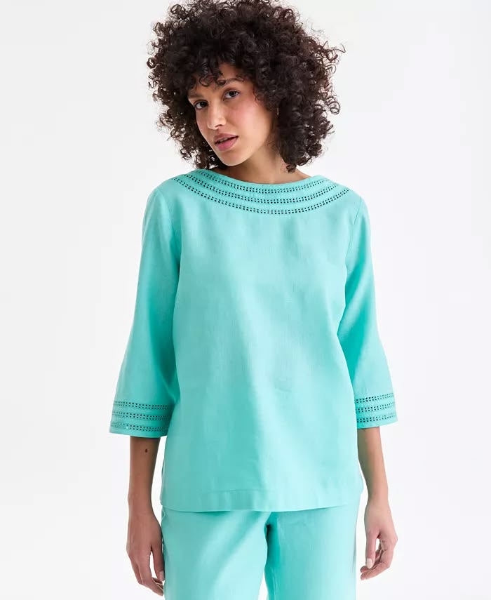 Ladder style crochet detailing at the cuffs and neckline lend the perfect finishing touch to this 3/4-Sleeve 100% Linen Blouse. Made from 100% linen. $79.50. Buy here.