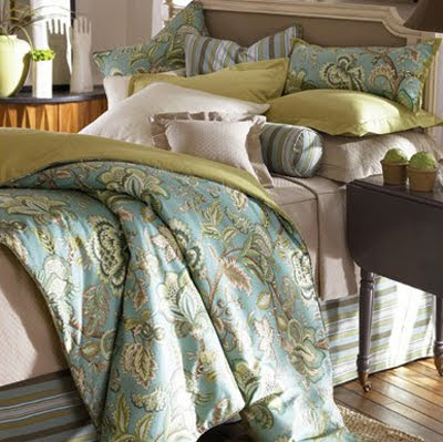 Transport yourself with this Mystic Valley Traders Tucker’s Point Bedding Collection! Duvet cover has kaitlin pattern reversing to chamomile with breezeway piping and a bottom hidden zipper closure. Coverlet has wicker, lined, with a clean-edge finish at the bed perimeter, no pillow tuck. Bed skirt has breezeway (on the horizontal), lined, tailored with 16″ drop. Accent pillows available in several fabrics. Set includes duvet cover, euro shams, standard shams and large boudoir pillow. $82.11-$1,778.99. Free shipping. Buy here.