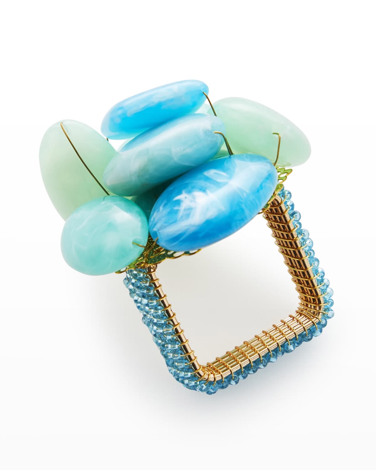 Elevate your table with the Kim Seybert Sea Stone Napkin Ring, where glossy, ocean-hued stones are artfully arranged to evoke the effortless beauty of the sea. Its sculptural design and shimmering textures bring a refined, coastal elegance to any place setting. $21. Buy here.
