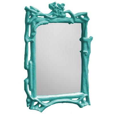 The Stray Dog Designs Magalie Bahaman Sea Blue Mirror highlights the romance found in nature with gnarled papier-mache sticks forming a lace-inspired frame. Above a console or dresser, this transitional mirror pops in Bahaman Sea Blue. 32″W x 48″H. $480. Free shipping. Buy here.