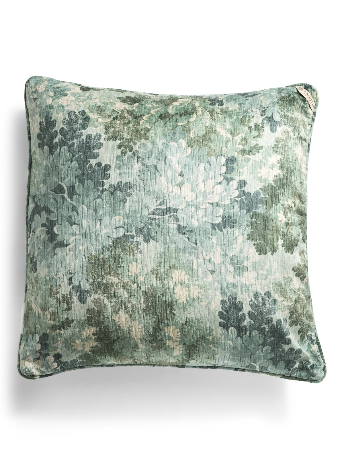 Update your sofa or bed with this feather-filled 24×24 Tapestry Leaves Velvet Printed Oversized Luxe Pillow from Callisto Home. Features a removable zip cover in velvet finish. $70 Now $49.99. Buy here.